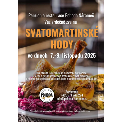 SVATOMARTISKÉ HODY NA POHODĚ! Ve dnech 7.-9.11.2025 jsme si pro Vás připravili Svatomartinské menu. Pro rezervace volejte na tel.: +420 774 742 224…